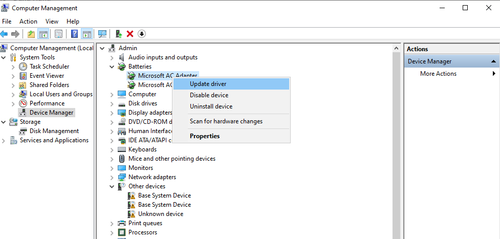 Trên Windows, sẽ có 1 số driver dành cho các thiết bị pin và nguồn. Trong trường hợp sạc laptop không vào điện, bạn cũng cần kiểm tra và cập nhật các driver này. Các bạn vào mục Device Manager, update các driver trong mục Batteries.