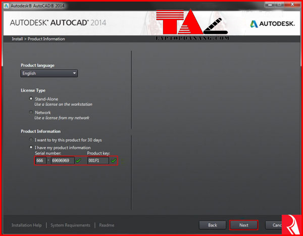 Bước 3: Các bạn nhập Serial Number và Product Key như sau: