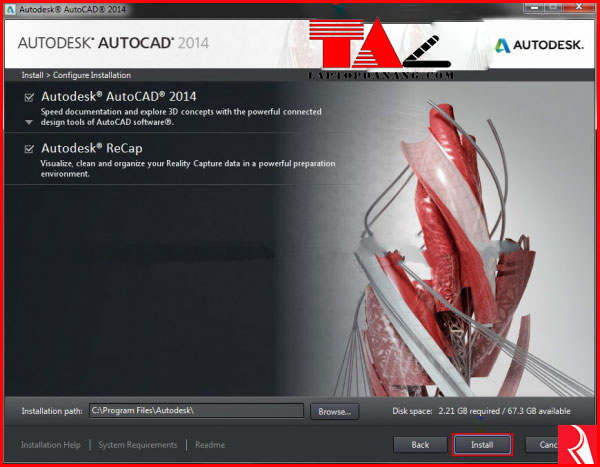 Tiếp theo, các bạn bấm vào Install để bắt đầu cài CAD 2014 vào hệ thống