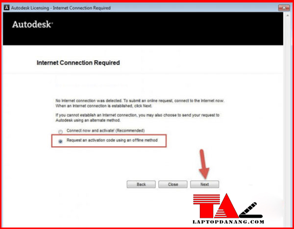 Tick vào dòng “Request an activation code using an offine method” rồi nhấn “Next”