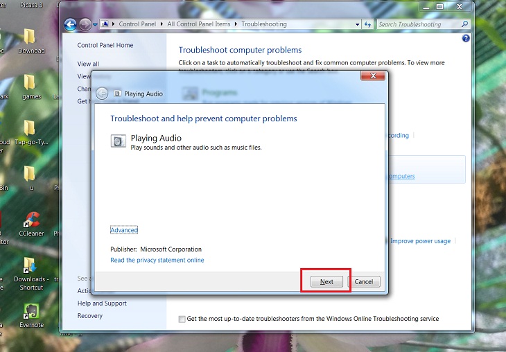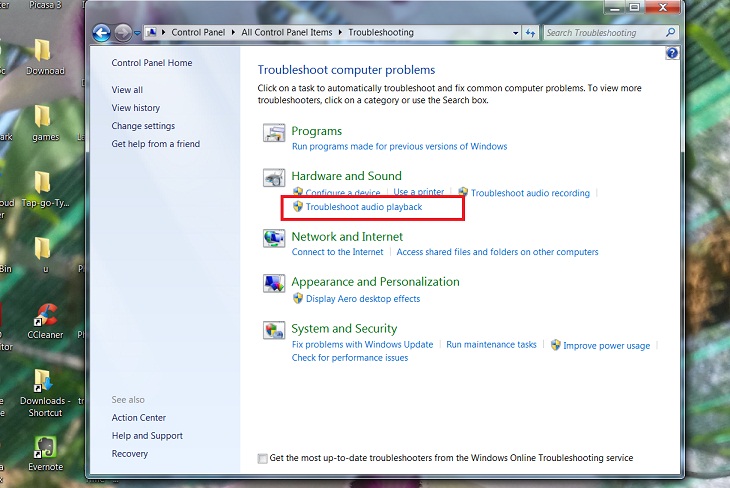 Microsoft có một vài giải pháp khắc phục sự cố FixIt dành cho các sự cố âm thanh trong Windows. Với Windows 7 bạn vào Start chọn Control Panel